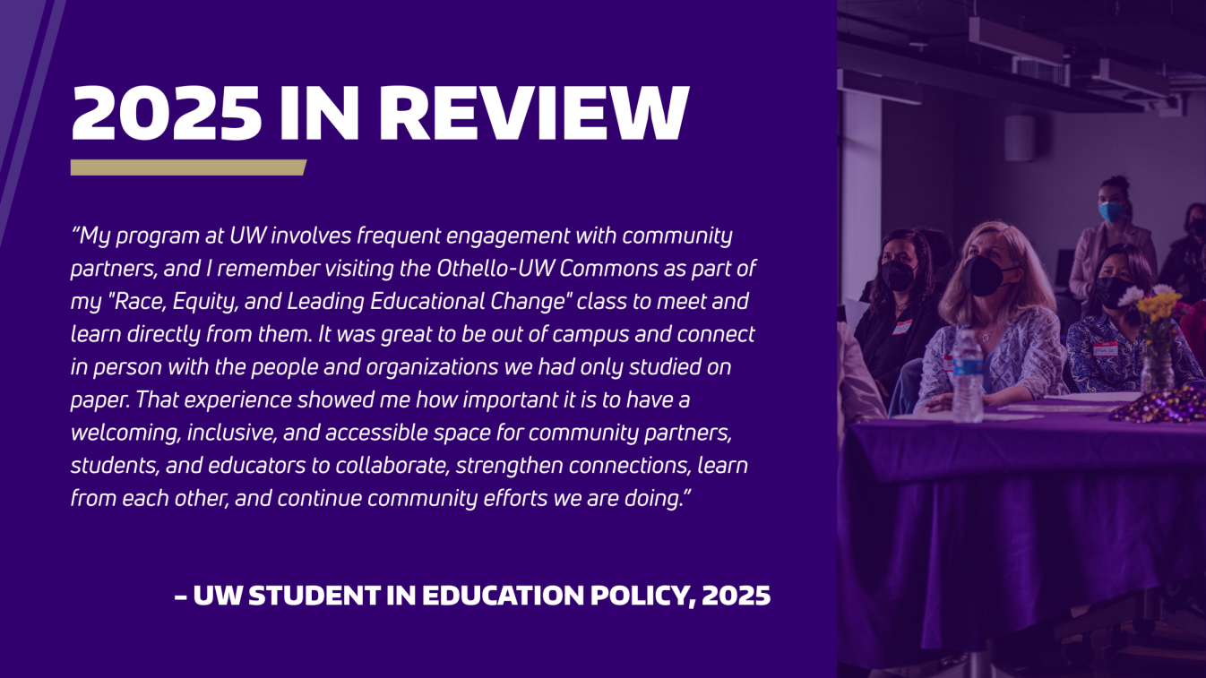 Through sustained and mutually beneficial partnerships, place-based initiatives connect the UW with local and regional communities in the ongoing and collective efforts to advance equity in education, health and economic opportunities.